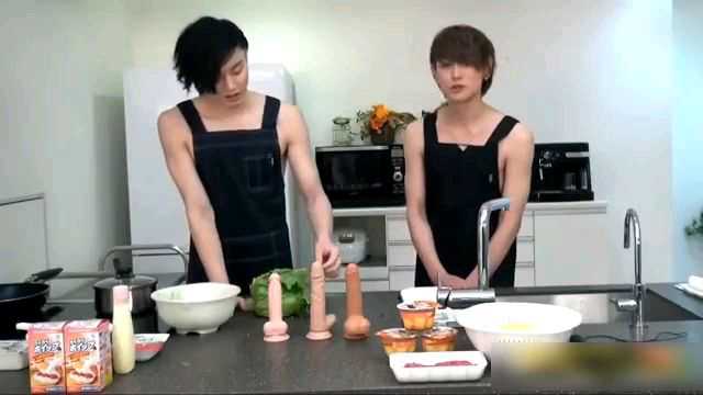 两个帅哥在厨房互动用假鸡巴做菜讨论用法,被呲一身
