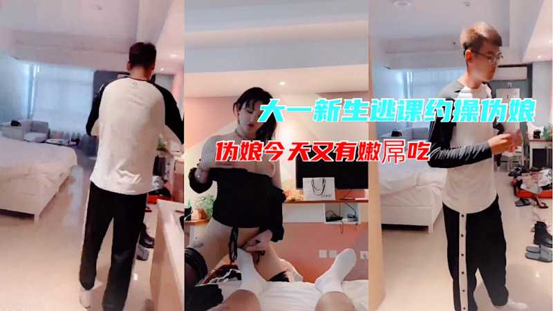 没见过世面的大一新生 为寻求刺激 逃课约操伪娘 伪娘今天又有嫩屌吃了