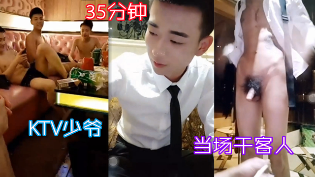 小哥支开同伴在KTV里爆肏帅哥服务生,同伴归来后直接回家3P
