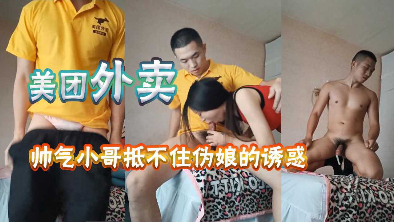 美团外卖帅气小哥抵不住诱惑,被伪娘勾引,脱下裤子,任由伪娘玩弄