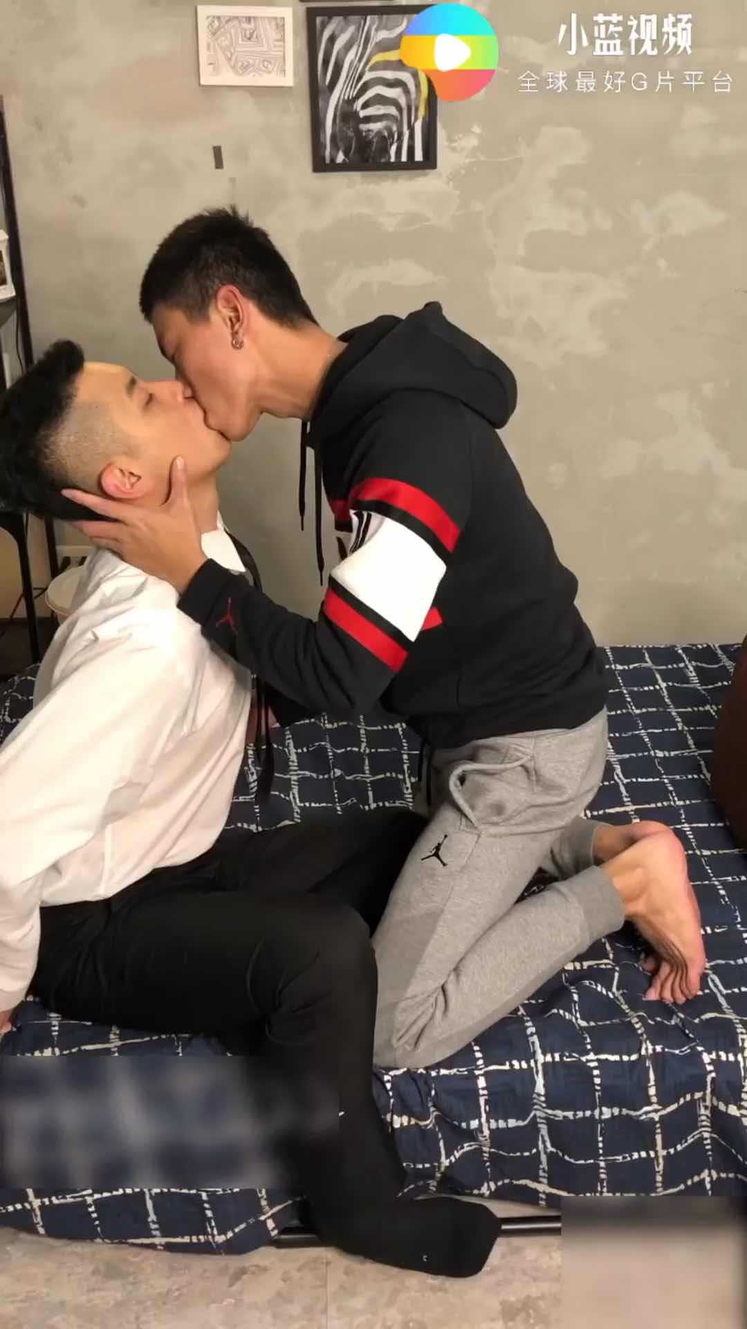 公司里的帅哥西装男下班后想向西装叔同事请教工作,去了宿舍之后被同事潜规则。下集