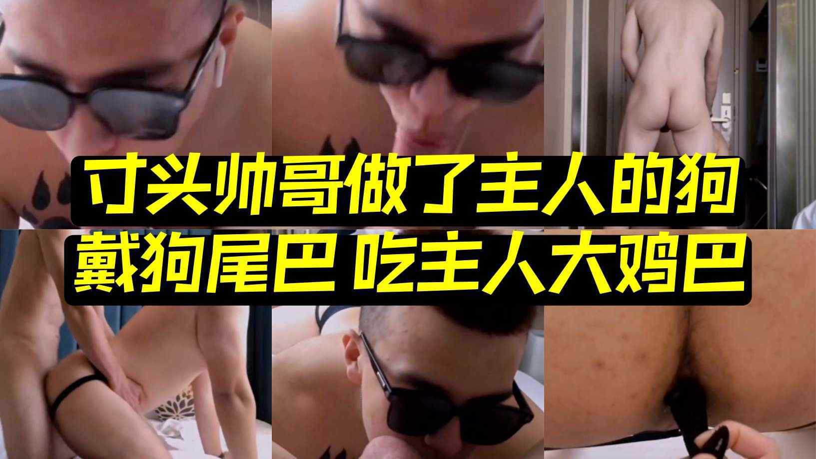 寸头帅哥做了主人的狗 戴狗尾巴 吃主人大鸡吧