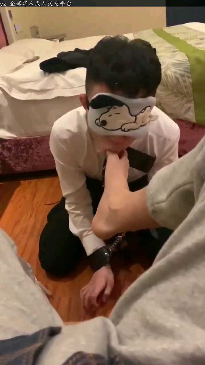帅气骚0被调教舔脚