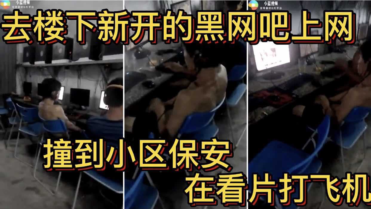 去楼下新开的黑网吧上网 撞到小区保安 在看片打飞机