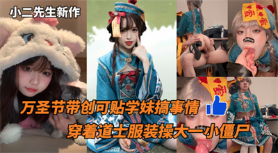 小二先生新作-万圣节带创可贴学妹搞事情穿着道士服装操大一小僵尸