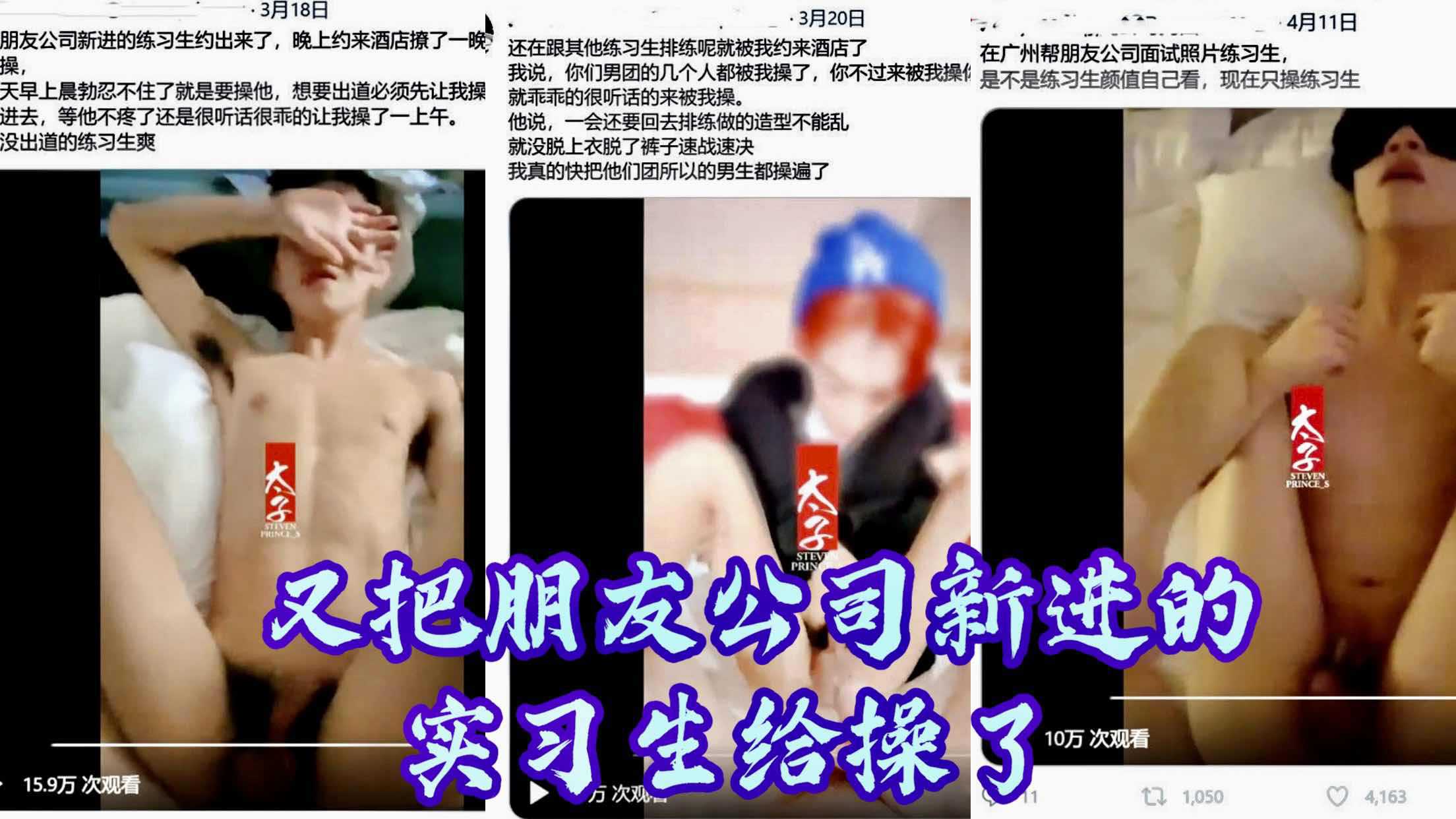 太子酒店和鲜肉学弟4P,鲜肉被两公轮操