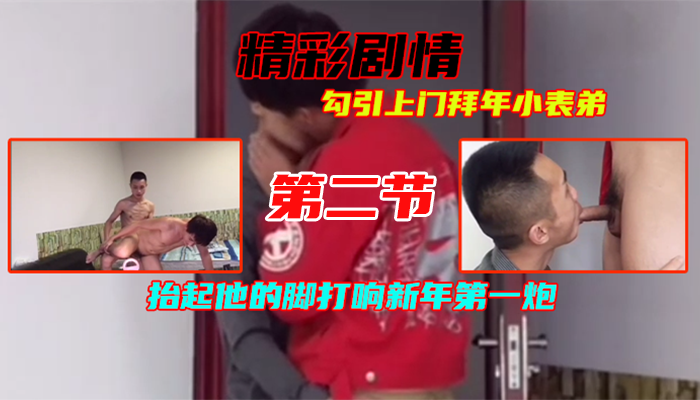 ②勾引上门拜年小表弟,英俊小鲜肉洞洞很嫩,抬起他的脚打响新年第一炮