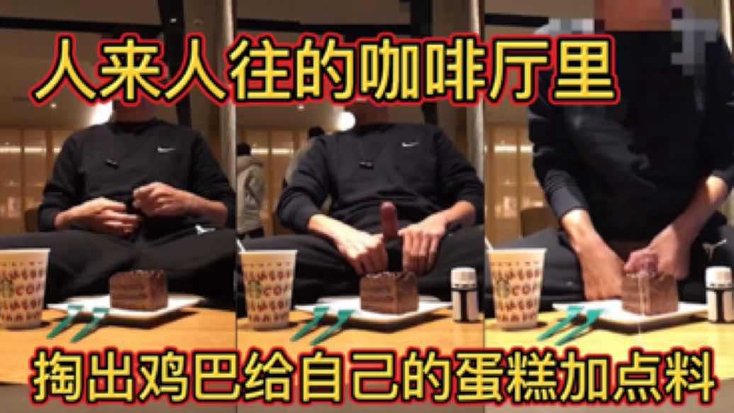 人来人往的咖啡厅里 掏出鸡巴给自己的蛋糕加点料 露出打飞机真刺激