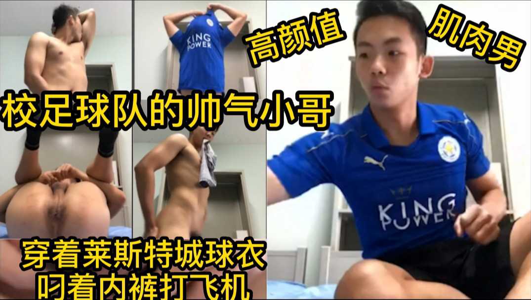 校足球队的帅气小哥 穿着莱斯特城球衣把内裤塞到嘴里打飞机