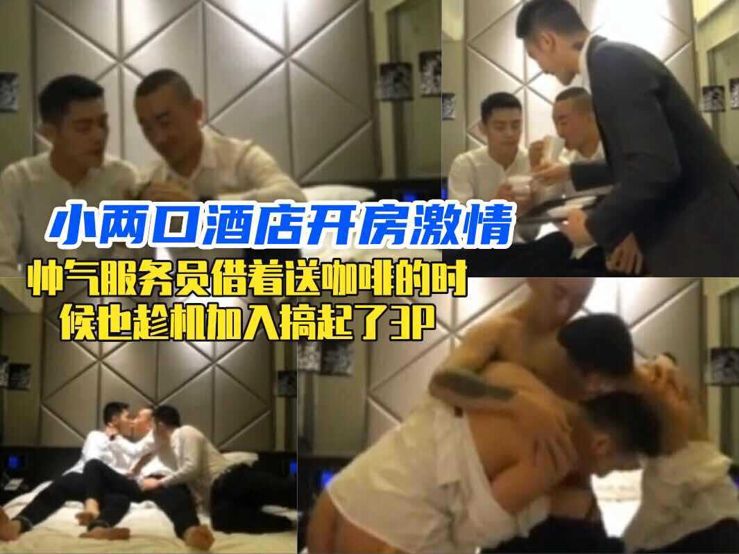 帅气服务员看到小两口开房,接着送咖啡的机会也趁机加入搞起了3p
