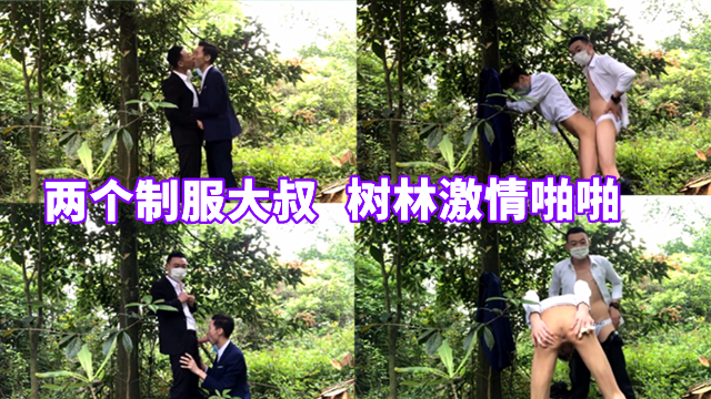 两个制服西装大叔,树林里激情啪啪