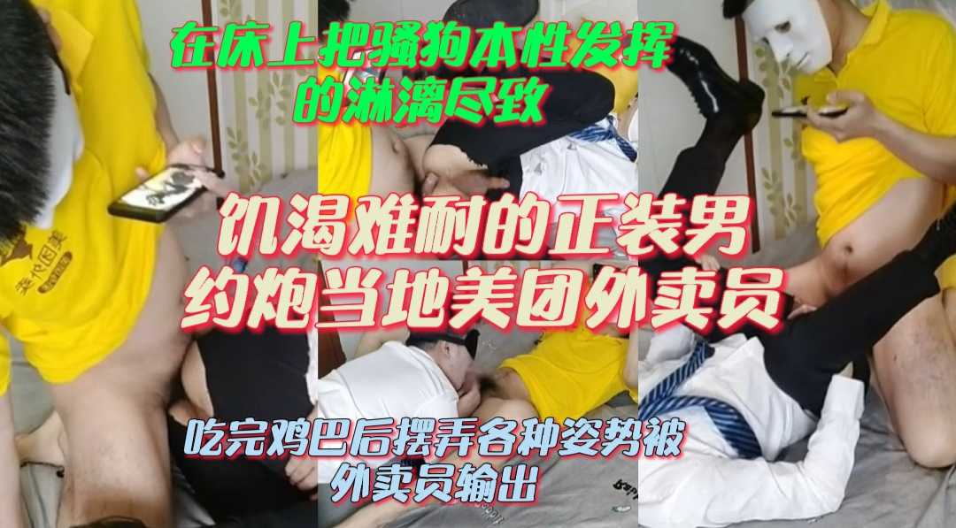 饥渴难耐的正装男约炮当地美团外卖员,在床上把骚狗本性发挥的淋漓尽致