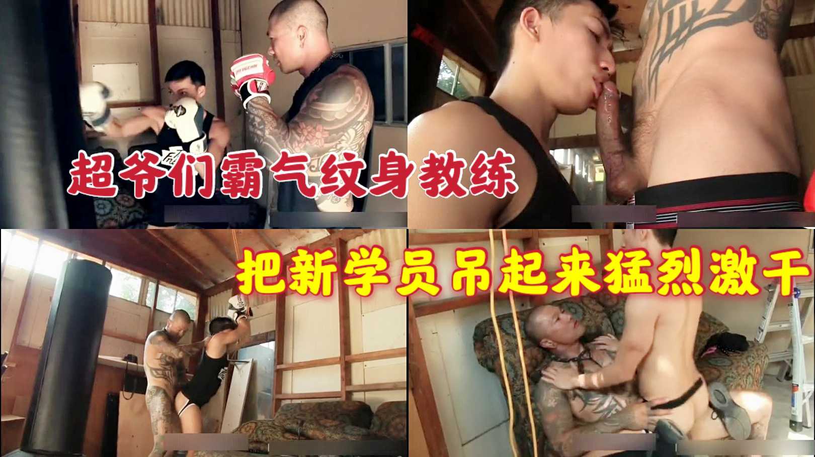 超爷们霸气纹身教练 把新学员吊起来猛烈激干