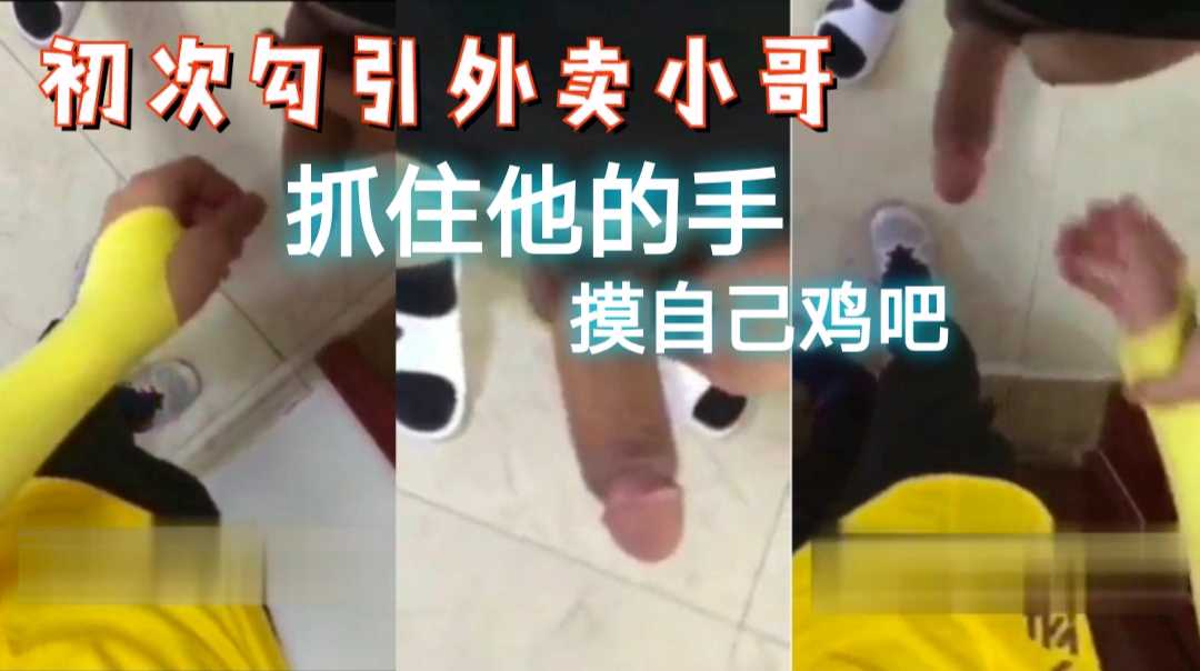 初次勾引外卖小哥,抓住他的手,放在我的鸡巴上,羞辱他!