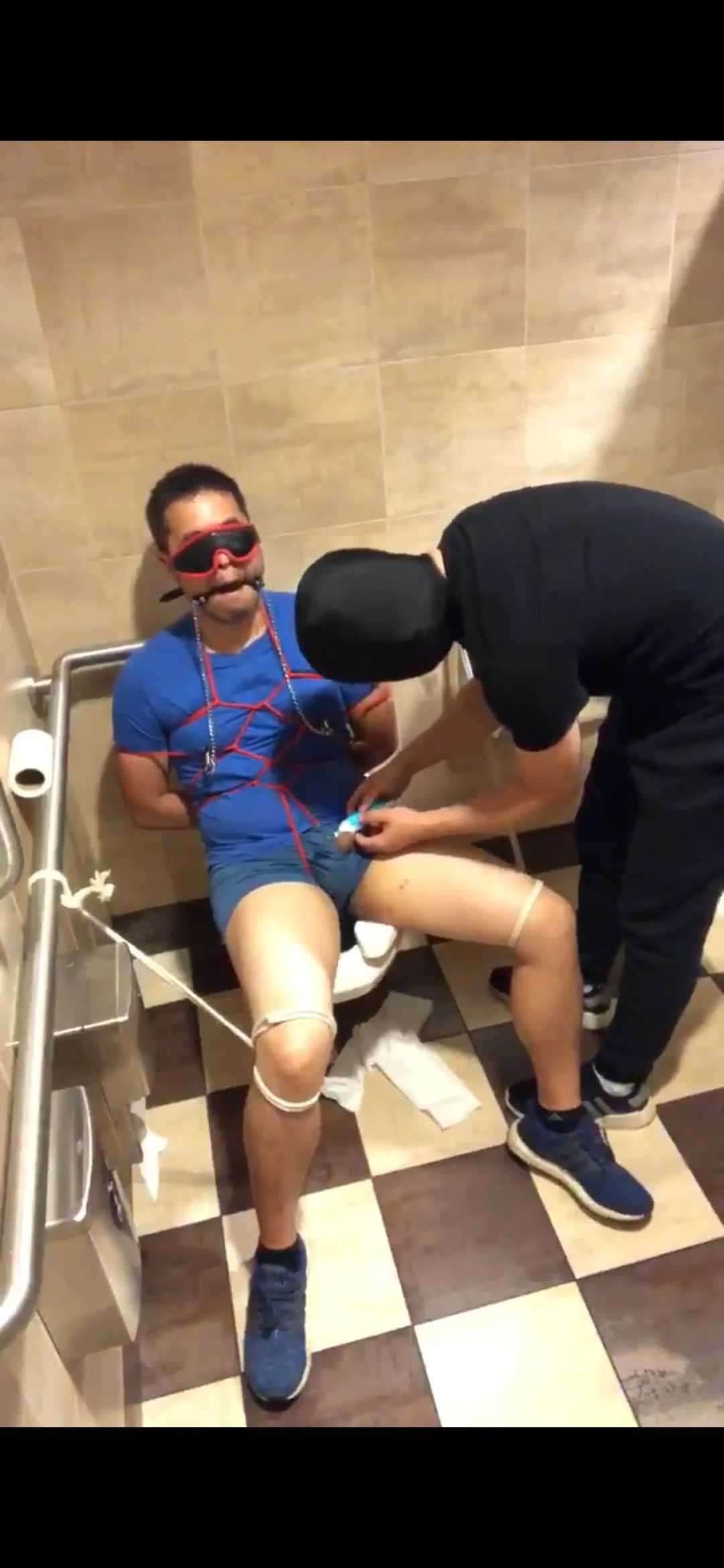 公司厕所惊现肉便器,西装男被绑求救,同事依次享用