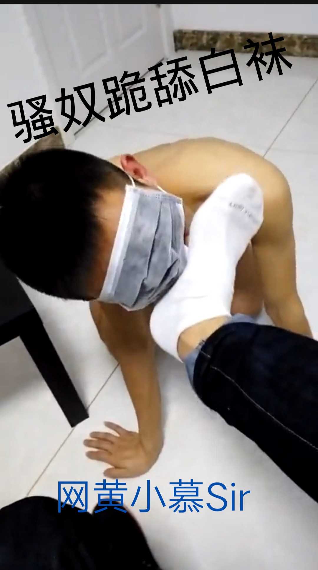 网黄小慕Sir原创,薄肌学生骚奴跪舔白袜臭脚