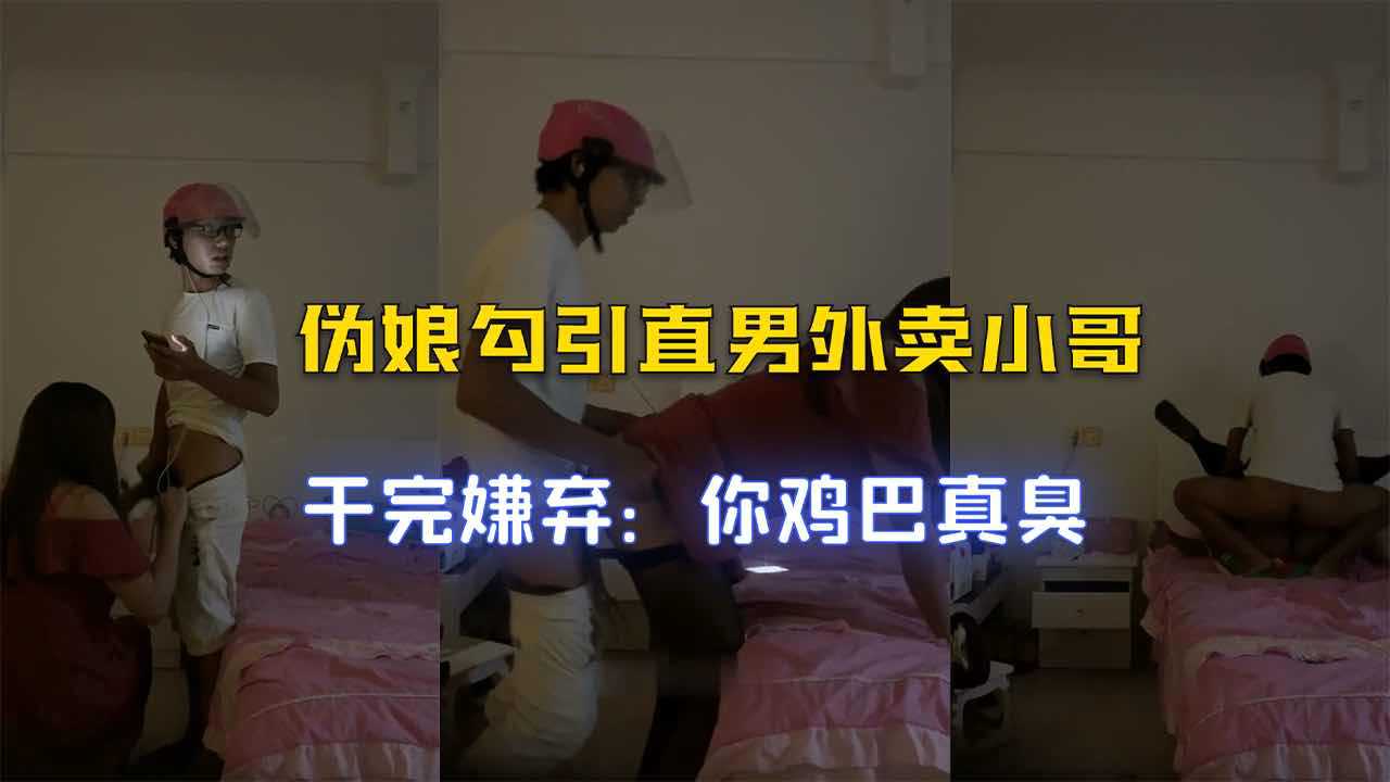伪娘勾引直男外卖小哥,干完嫌弃小哥鸡巴臭