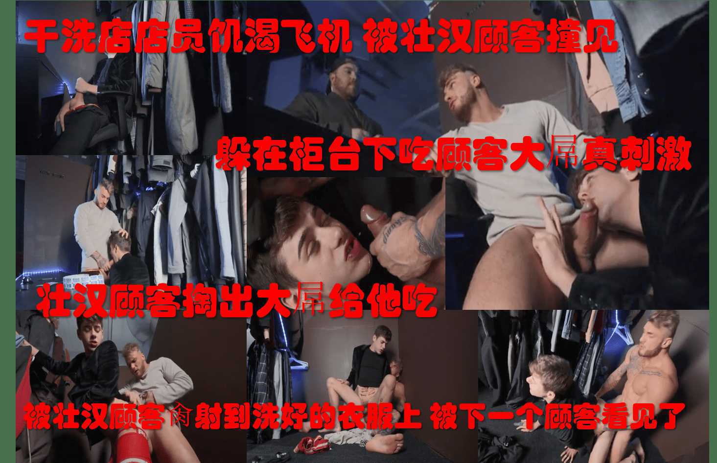 干洗店员躲在柜台下吃顾客大屌,还被肏的射到别的顾客衣服上