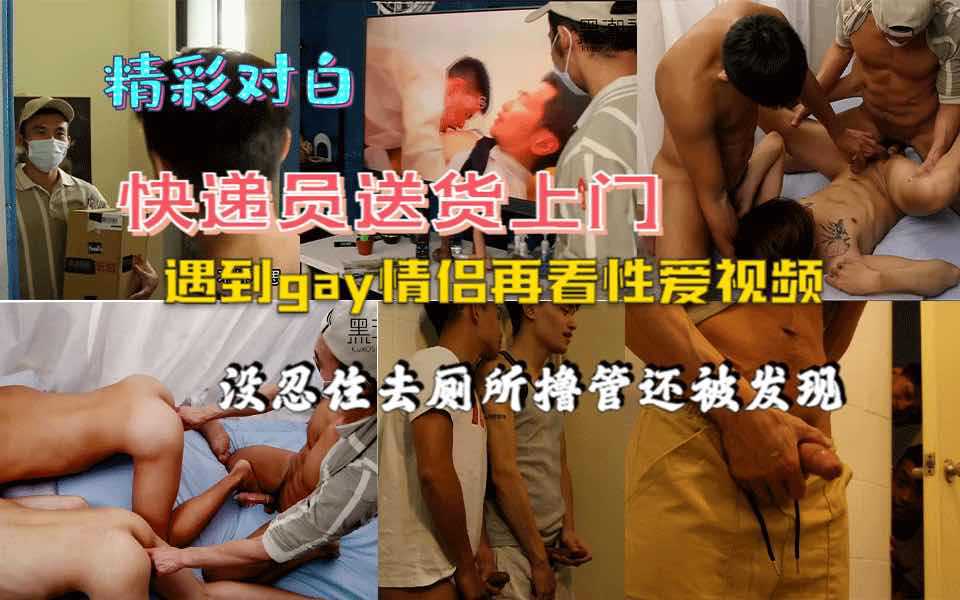 快递员送货上门,遇到gay情侣正在看性爱视频,看到自己有了感觉去厕所撸一管还被情侣发现,